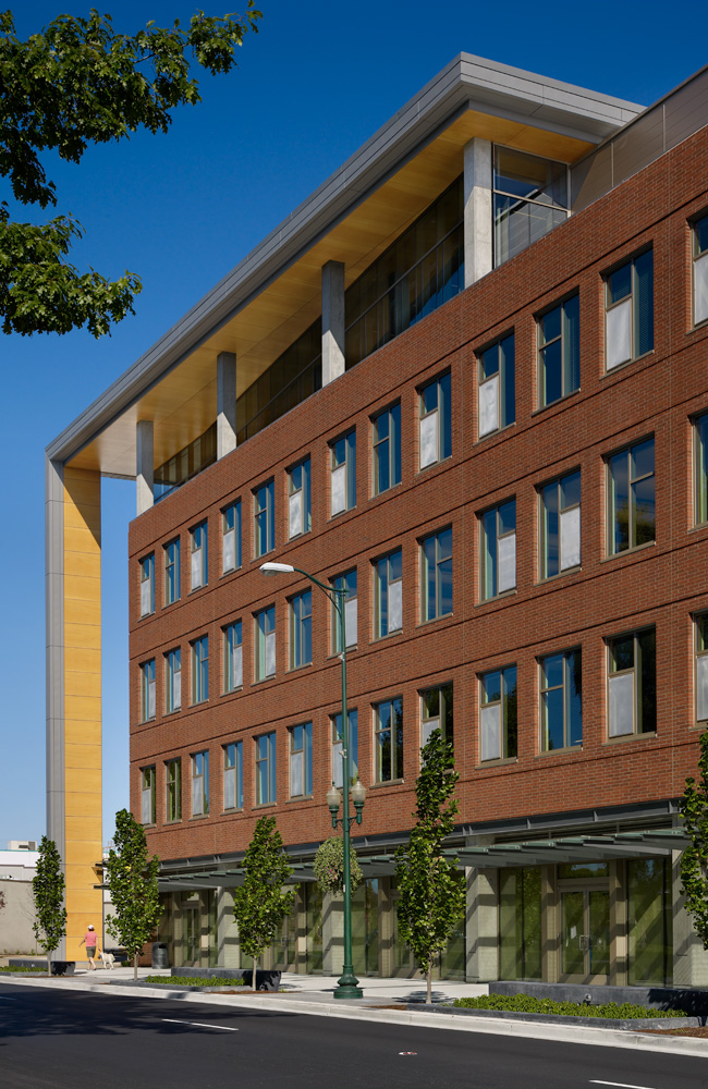 The new City Hall consolidates remotely located departments to improve communication, while providing energy-efficient facilities for municipal agencies and the public. A civic plaza welcomes pedestrians and serves as a gateway to historic Pioneer Park, a new public garden courtyard and streetscape, and the adjacent neighborhood.