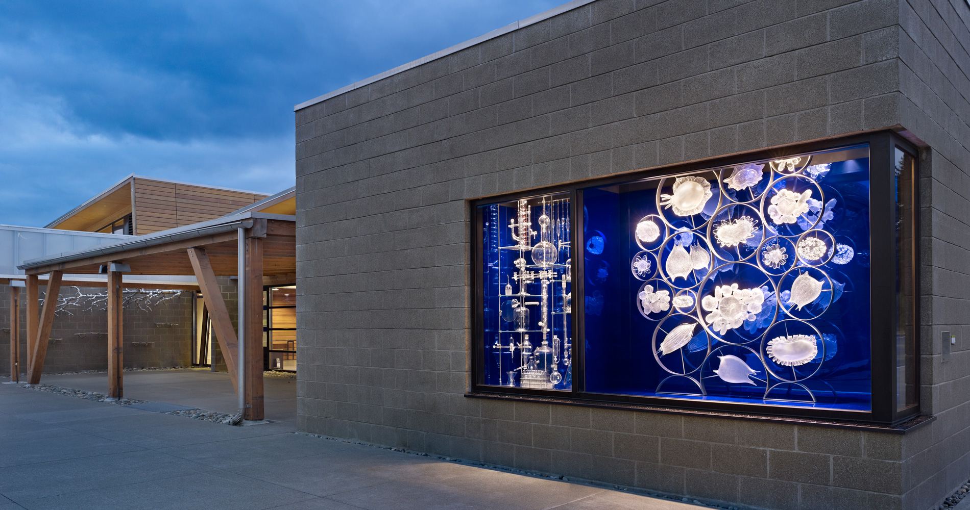 Previously the site of a car salvage yard, the Center perches above a spectacular natural environment that extends hands-on learning beyond the building. New wetlands provide habitat and clean water for a restored salmon spawning stream, demonstrating the functionality and potential of sustainable infrastructure and ecology.