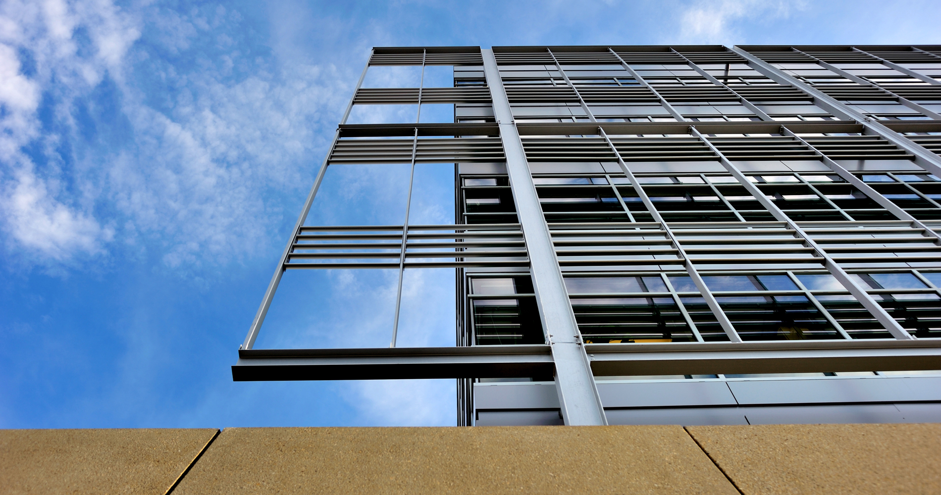 Sustainable features are incorporated throughout, including multiple green strategies to address stormwater runoff and reduce energy demand. Natural daylight is maximized through a full-height window wall and heat loads are minimized with an exterior shading louver system.